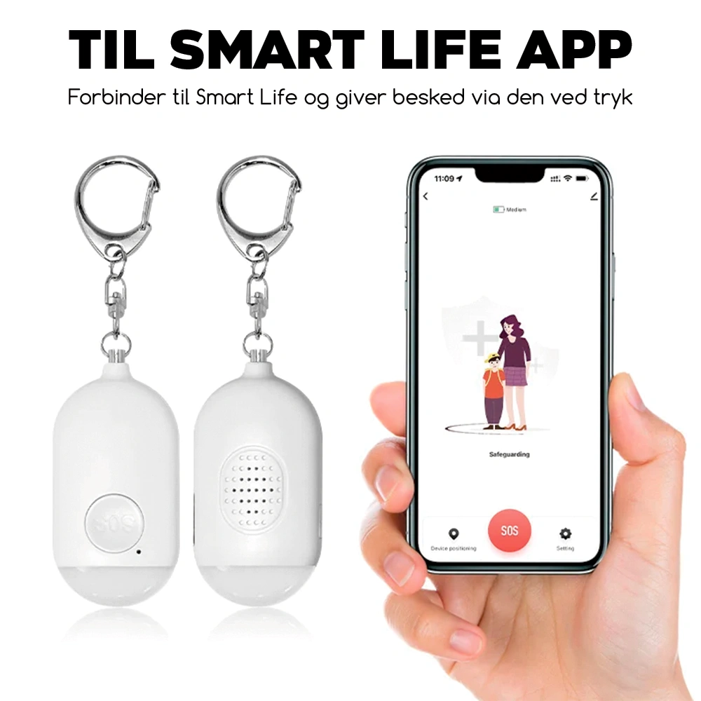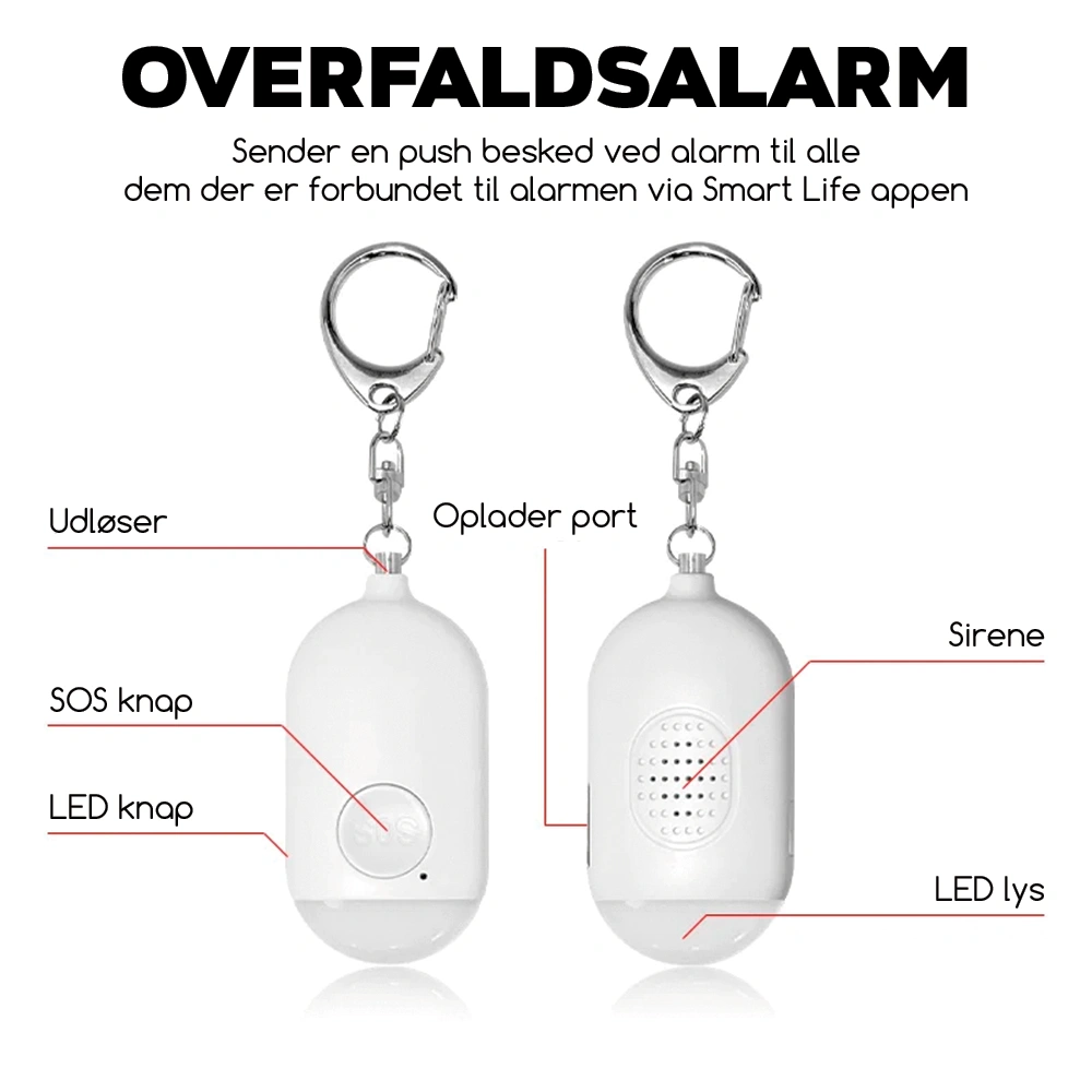 Produktbeskrivelse: Overfaldsalarm med Bluetooth-forbindelse til Smart Life App