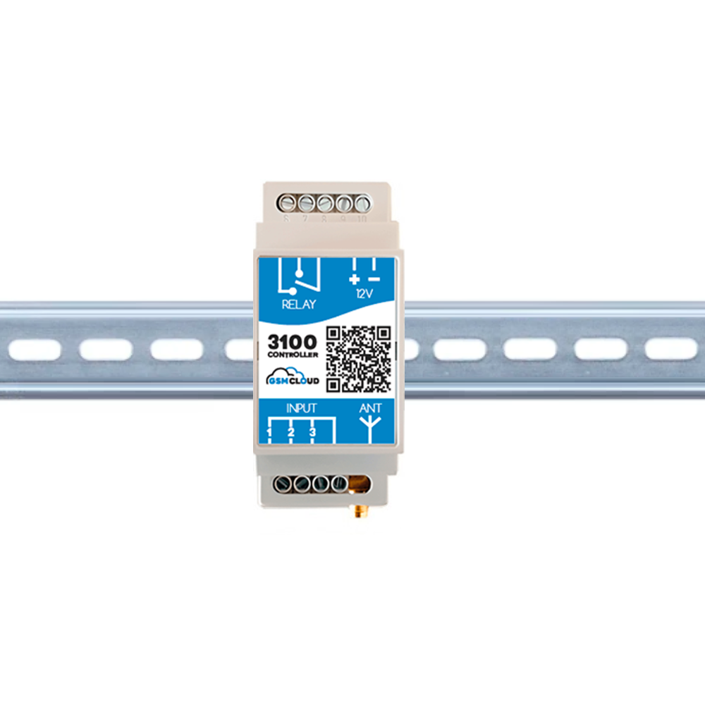 GSM styring med 3 indgange og 1 relæudgang. Tilsluttes 12VDC og passer på DIN skinne.
