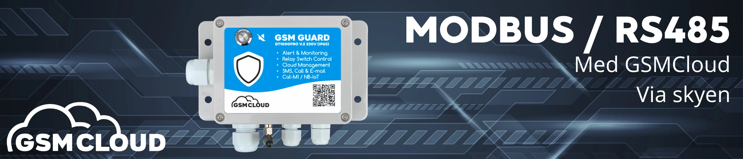 GSMCloud understøtter Modbus via RS485, hvilket gør det muligt at etablere en stabil og fleksibel kommunikation mellem forskellige tekniske enheder og en central overvågningsplatform. Modbus er en åben kommunikationsprotokol, der er bredt anvendt i industri og bygningsautomation til dataudveksling mellem elektroniske enheder – herunder sensorer, måleinstrumenter, styringer og alarmpaneler.