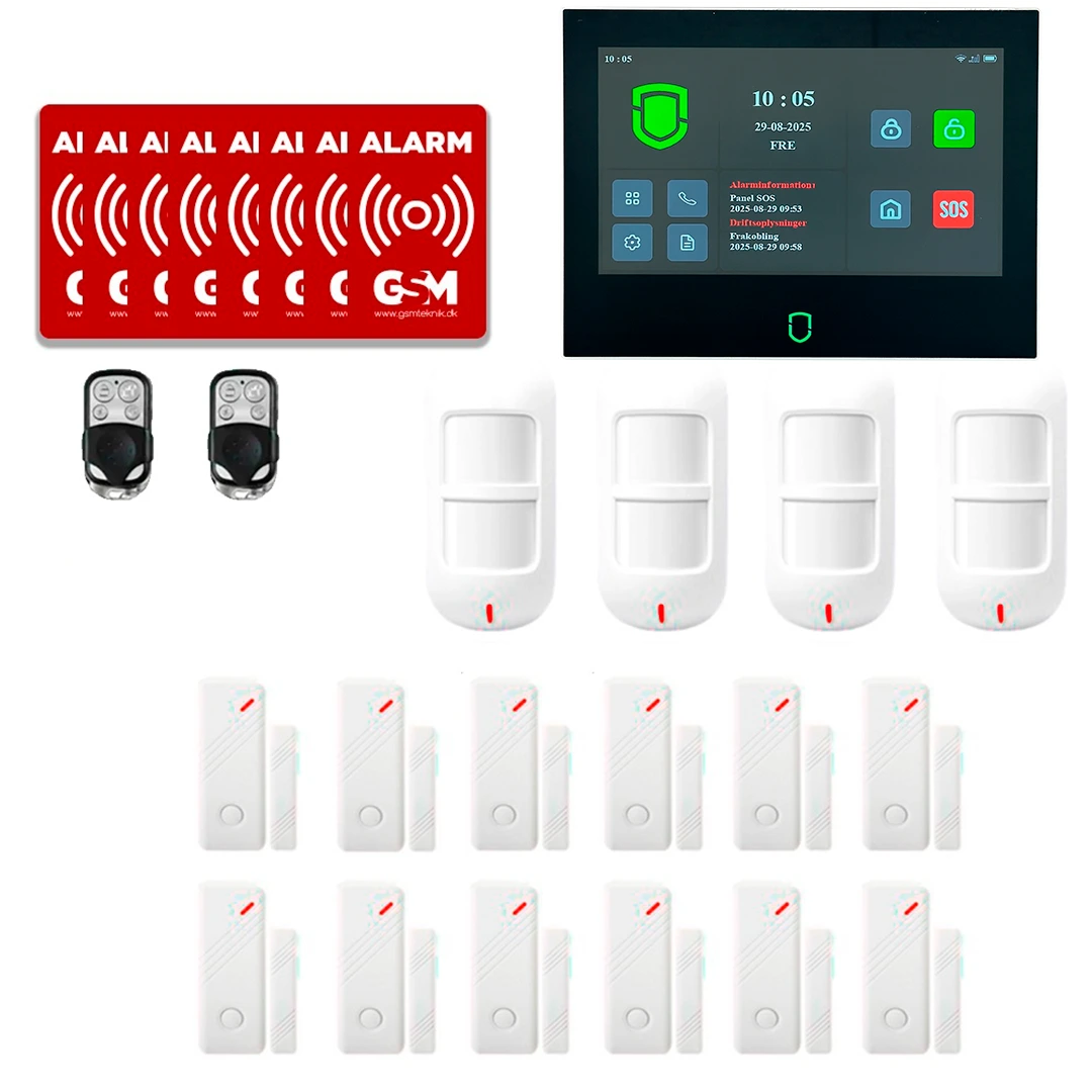 Har du brug for en komplet alarm til en stor villa, landejendom eller virksomhedslokaler? Denne 4G tyverialarm pakke er designet til at dække op til 250 m² og giver maksimal tryghed – uden abonnement og uden kompliceret opsætning.